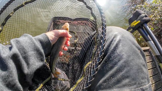On to the fishing… It was a slow start but I eventually started to catch some decent roach on the 10m line. They took a bit of working out, but I managed to keep putting fish in the net fairly steadily, mostly on maggot, but a few on caster and a brief run shallow.