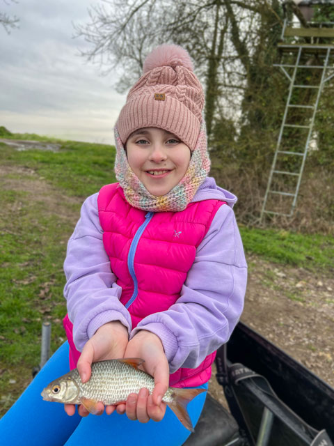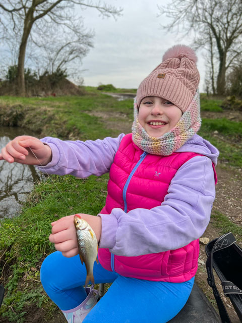 Half-term this week, so we’ve just spent a cold but enjoyable couple of hours on the bank. A slow start, as you’d expect after a frost, but that gave us some time to tuck into the soup and hot chocolate I’d sensibly packed.