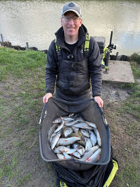 They began weighing in it at peg 1 and Lee Newsom was the early leader with 26lb 8oz from peg 5. As most of my fish were skimmers and roach I didn’t think I had anything like that, so was surprised to put 24lb 12oz on the scales. That was the best weight on my side of the lake and enough for 4th overall and a nice section prize. Len Stephens was 2nd with 25lb 13oz from peg 9 and Mark Knight was 3rd with 24lb 15oz from peg 6, so just 1lb 12oz separated the top four!