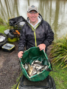 Sunday was Round 4 of the Ivy House silvers league. Think every round it’s rained and today was no different, this time combined with a cold and very stormy wind! After one of my wobbly starts to the day I eventually arrived at the venue and got the penultimate peg in the bag, which was end peg 48 on Kingfisher. I was told it would be full of carp, and it certainly was at the end, but I’ve still had a nice match, catching lots of skimmers and roach, plus one F1 for a match-winning 24lb 14oz.